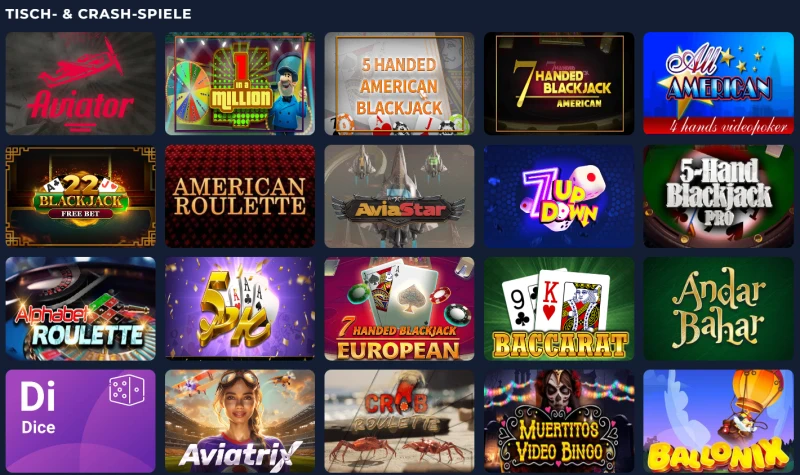 Tischspielliebhaber können verschiedene Varianten von Blackjack, Roulette, Baccarat und Poker genießen. Unser Live-Dealer-Bereich, betrieben von Evolution Gaming, bietet immersive Erlebnisse mit professionellen Dealern aus hochmodernen Studios.